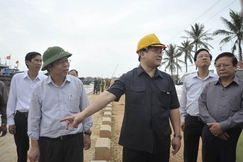Kiểm tra việc neo tầu tại âu thuyền Nam Cửa Việt, Phó Thủ tướng Hoàng Trung Hải yêu cầu bộ đội Biên Phòng và lực lượng tại chỗ kiểm tra bãi neo đậu tầu thuyện các ụ neo, dây cáp