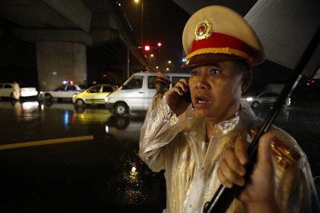| Phóng viên Minh Đức cho biết, tối 10/11, toàn bộ 600 cảnh sát giao thông tại Hà Nội đã tham gia chống bão số 14. Lực lượng CSGT đã tăng cường tuần tra kiểm soát trên địa bàn quản lý tập trung tại các điểm có nguy cơ xảy ra ngập úng trong mùa mưa bão năm 2013.