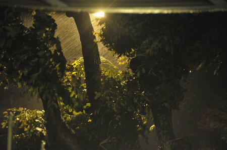 | Tại TP Hải Phòng mưa rất to, gió lớn. Toàn bộ khu vực nội thành đã cắt điện nên đường phố cũng tối đen, không một bóng người qua lại. | |