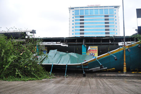 | Bão làm đổ một số cây xanh và biển hiệu quảng cáo trên địa bàn TP Hạ Long.. |