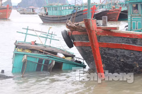 TPO - Siêu bão Haiyan gây ra những thiệt hại nặng nề tại thương cảng Vân Đồn (Quảng Ninh). Dưới đây là một vài hình ảnh tàu chìm do PV Tiền Phong ghi lại.