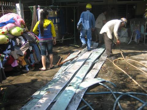 Nhiều hộ dân xung quanh hốt hoảng di dời đồ đạc ra ngoài đề phòng lửa cháy lan.