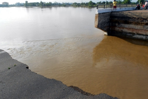 Để đảm bảo an toàn cho nhịp cầu còn lại, chiều 16/11, chính quyền địa phương thị xã phối hợp với UBND tỉnh đã tiến hành cho xe đổ đá gia cố taluy mái.