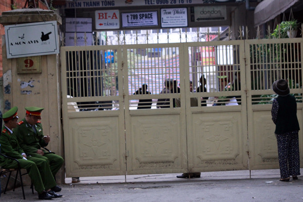 | Hàng chục công an được điều động bảo vệ hiện trường. Ảnh: Minh Đức |