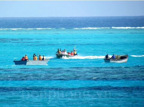 | Tàu của ngư dân Quảng Ngãi bên đảo Song Tử Tây – ảnh Nguyễn Đình Quân. |