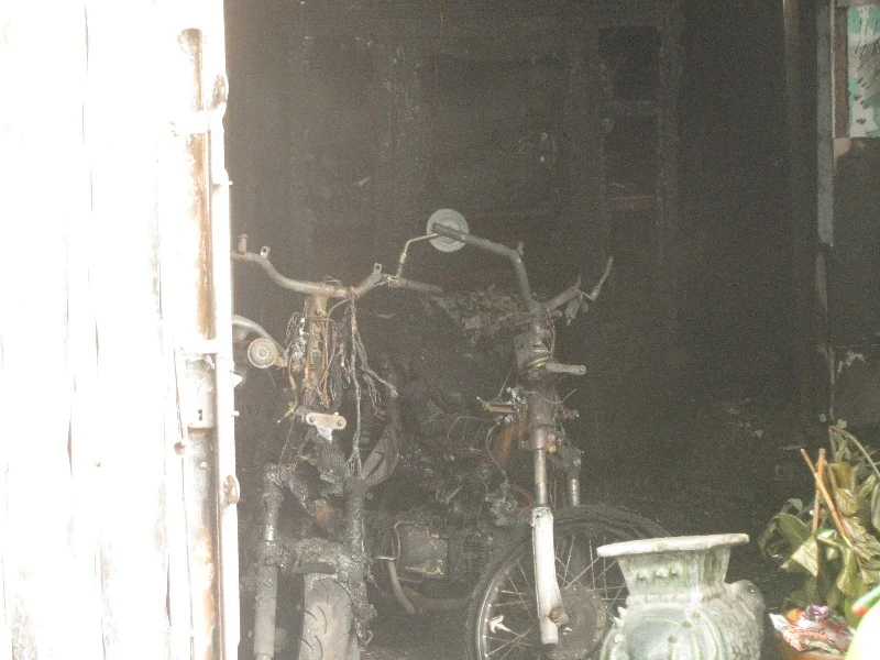 | Năm chiếc xe máy cùng nhiều đồ đạc bị cháy rụi. |