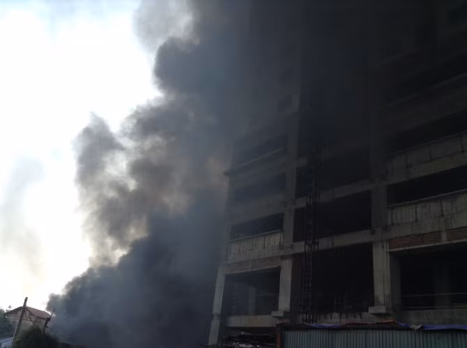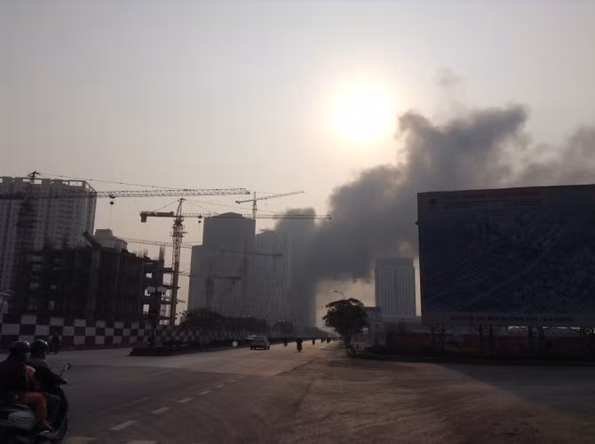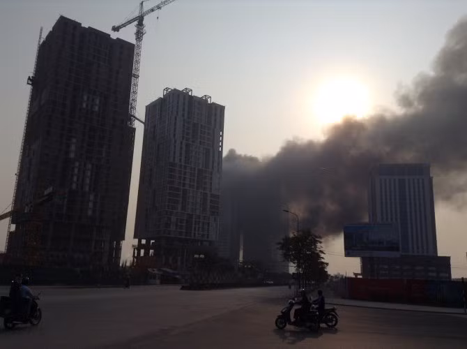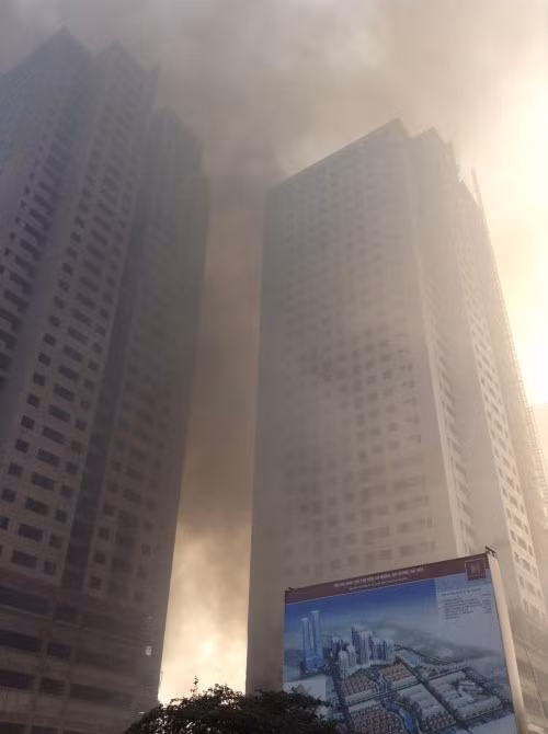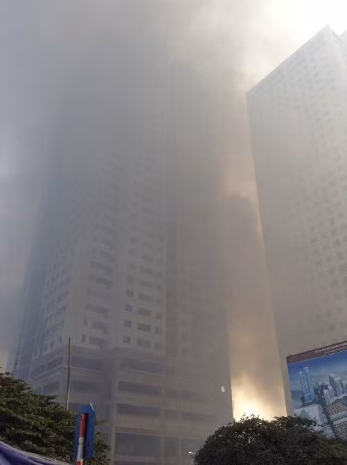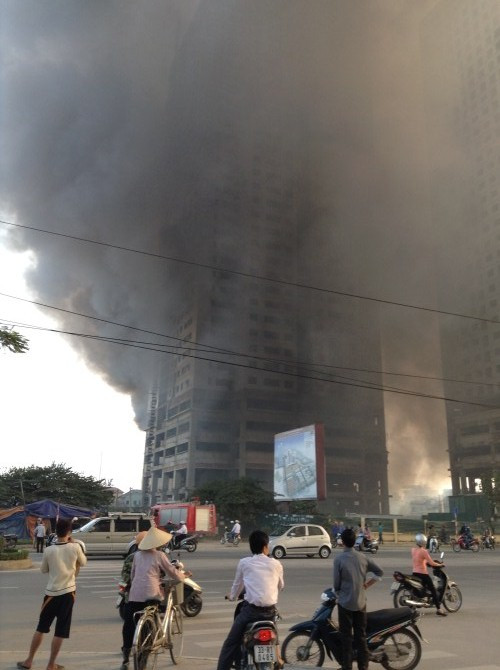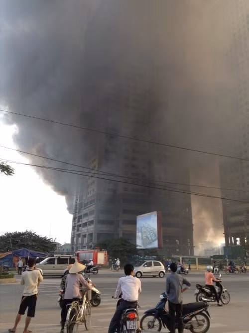 Nhân chứng tại hiện trường cho hay, ngọn lửa bùng lên rất nhanh và dữ dội, tạo ra những cuộn khói dày đặc, bao trùm gần hết tòa nhà cao tầng đang được thi công ngay sát đó.