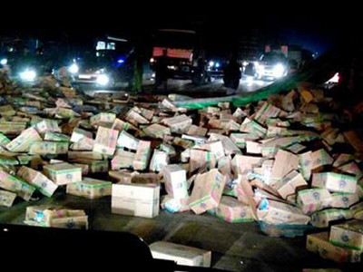 Lật xe, sữa hộp đầy đường, không ai ‘hôi’ của