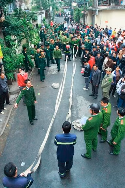Phía Phòng Cảnh sát Phòng cháy chữa cháy Đống Đa cũng huy động 5 xe cứu hỏa và hàng chục cán bộ chiến sỹ PCCC đến dập lửa. Lực lượng Công an phường, dân phòng, dân quân tự vệ phường Quang Trung (Đống Đa) cũng có mặt để phối hợp chữa cháy.