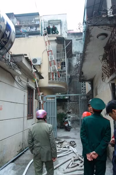 Trung tá Nguyễn Hồng Quang cho biết, chủ của những căn hộ bị cháy hầu hết đều vắng nhà, gây khó khăn cho việc PCCC. Lực lượng PCCC đã phải dùng thang dây, gậy chống để tiếp cận hiện trường.