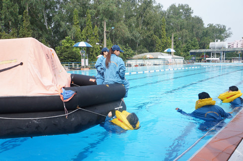 | Thực hành cứu hộ trong tình huống máy bay hạ cánh khẩn cấp xuống nước. |