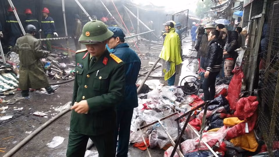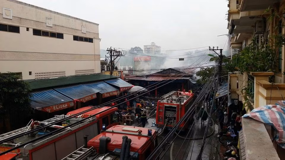 Vụ cháy xảy ra vào khoảng hơn 6h 16/12, tại khu chợ Nhà Xanh, phố Phan Văn Trường, phường Dịch Vọng Hậu, quận Cầu Giấy (Hà Nội)