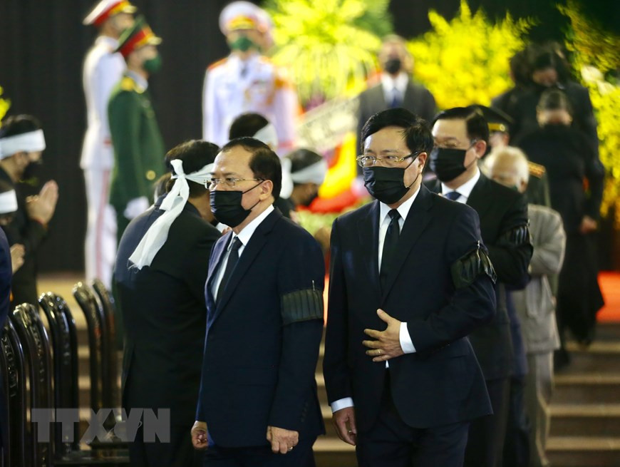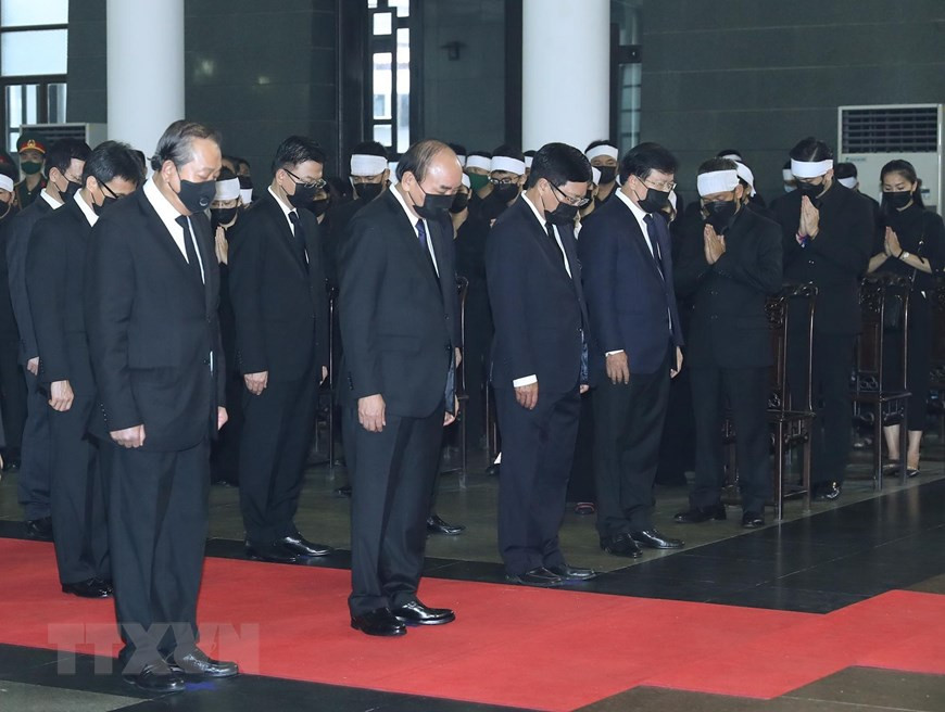 Đoàn đại biểu Chủ tịch nước Cộng hòa Xã hội chủ nghĩa Việt Nam do Phó Chủ tịch nước Đặng Thị Ngọc Thịnh dẫn đầu, viếng nguyên Tổng Bí thư Lê Khả Phiêu. (Ảnh: TTXVN)