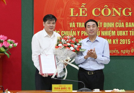 Liên quan đến công tác nhân sự của Đảng, thừa ủy quyền của Ban Bí thư Trung ương Đảng, đồng chí Trần Quốc Tỏ, Ủy viên Ban Chấp hành Trung ương Đảng, Bí thư Tỉnh ủy, Trưởng Đoàn đại biểu Quốc hội tỉnh Thái Nguyên đã trao quyết định của Ban Bí thư Trung ương Đảng chuẩn y chức vụ Ủy viên, Phó Chủ nhiệm Ủy ban Kiểm tra Tỉnh ủy Thái Nguyên khóa XIX, nhiệm kỳ 2015-2020 cho đồng chí Phan Thanh Hà, Phó Giám đốc Sở Tài nguyên và Môi trường tỉnh Thái Nguyên.