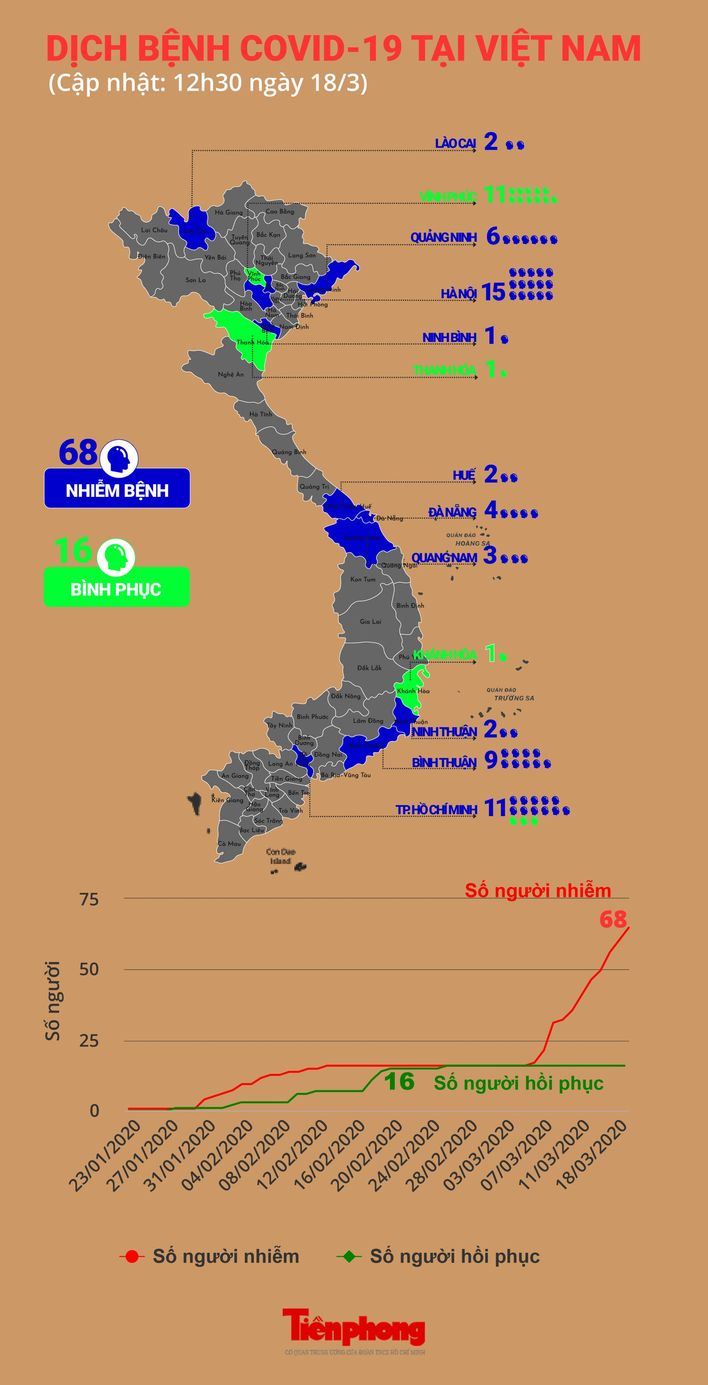 Liên quan đến nam bệnh nhân thứ 68 (41 tuổi, quốc tịch Mỹ, lấy vợ Việt Nam người TP Đà Nẵng), ngày 18/3, Ban chỉ đạo phòng chống dịch Covid-19 TP Đà Nẵng cho biết: 9h15 ngày 14/3 bệnh nhân đi chuyến bay MI632 (ghế ngồi số 15F) từ Singapore đến thành phố Đà Nẵng lúc 11h00 cùng ngày tại cửa khẩu Sân bay Quốc tế Đà Nẵng.