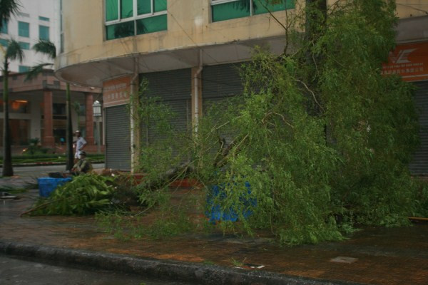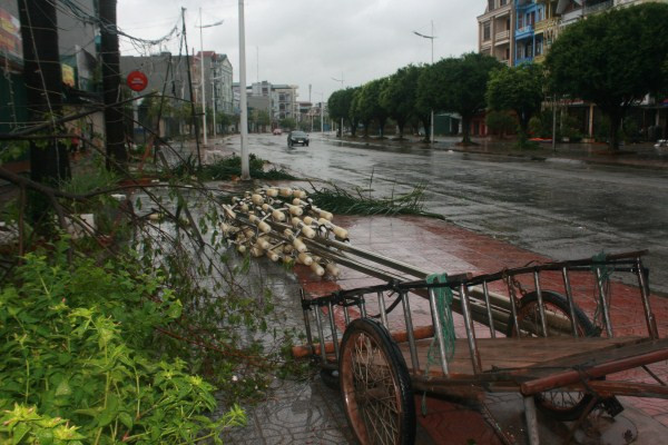 Sáng sớm 17/9, đường phố TP Móng Cái tan hoang vì bão. Ước tính sơ bộ, TP Móng cái thiệt hại trên 5 tỷ đồng.