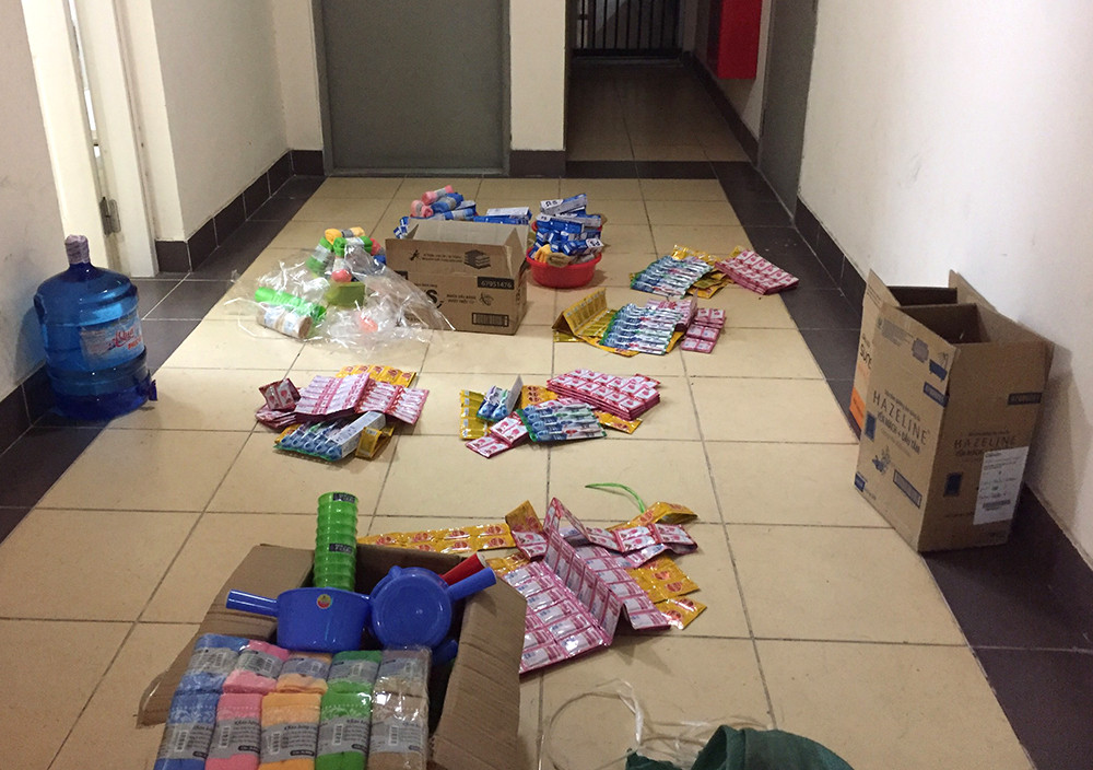 Những nhu yếu phẩm được các chiến sỹ phục vụ phân chia theo từng phòng