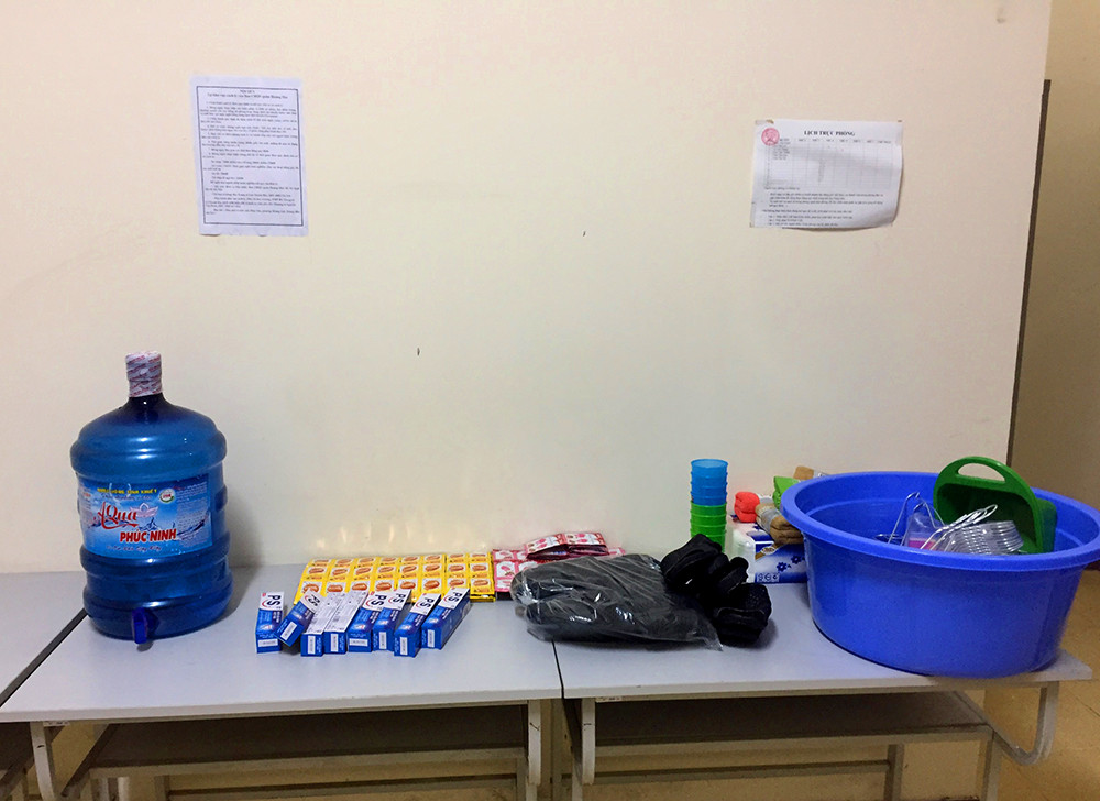Trước mỗi phòng cách ly đều để thêm 1 bình nước dự trữ
