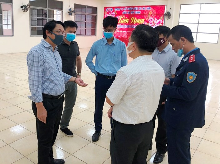 Sáng 24/3, ông Vũ Hà, Phó Giám đốc Sở GTVT Hà Nội và các đơn vị có liên quan như Thanh tra giao thông, Phòng Quản lý vận tải… đã làm việc và kiểm tra công tác phòng dịch, trong đó có bố trí phòng cách ly cho khách tại bến xe lớn nhất Hà Nội là Mỹ Đình. Để phòng dịch theo chỉ đạo, buổi làm việc hôm nay cũng có khác với mọi lần khi ông Vũ Hà (người giơ tay) cùng đoàn công tác làm việc với lãnh đạo bến xe Mỹ Đình đều đứng ở nhà điều hành thay vì vào phòng ngồi trao đổi.