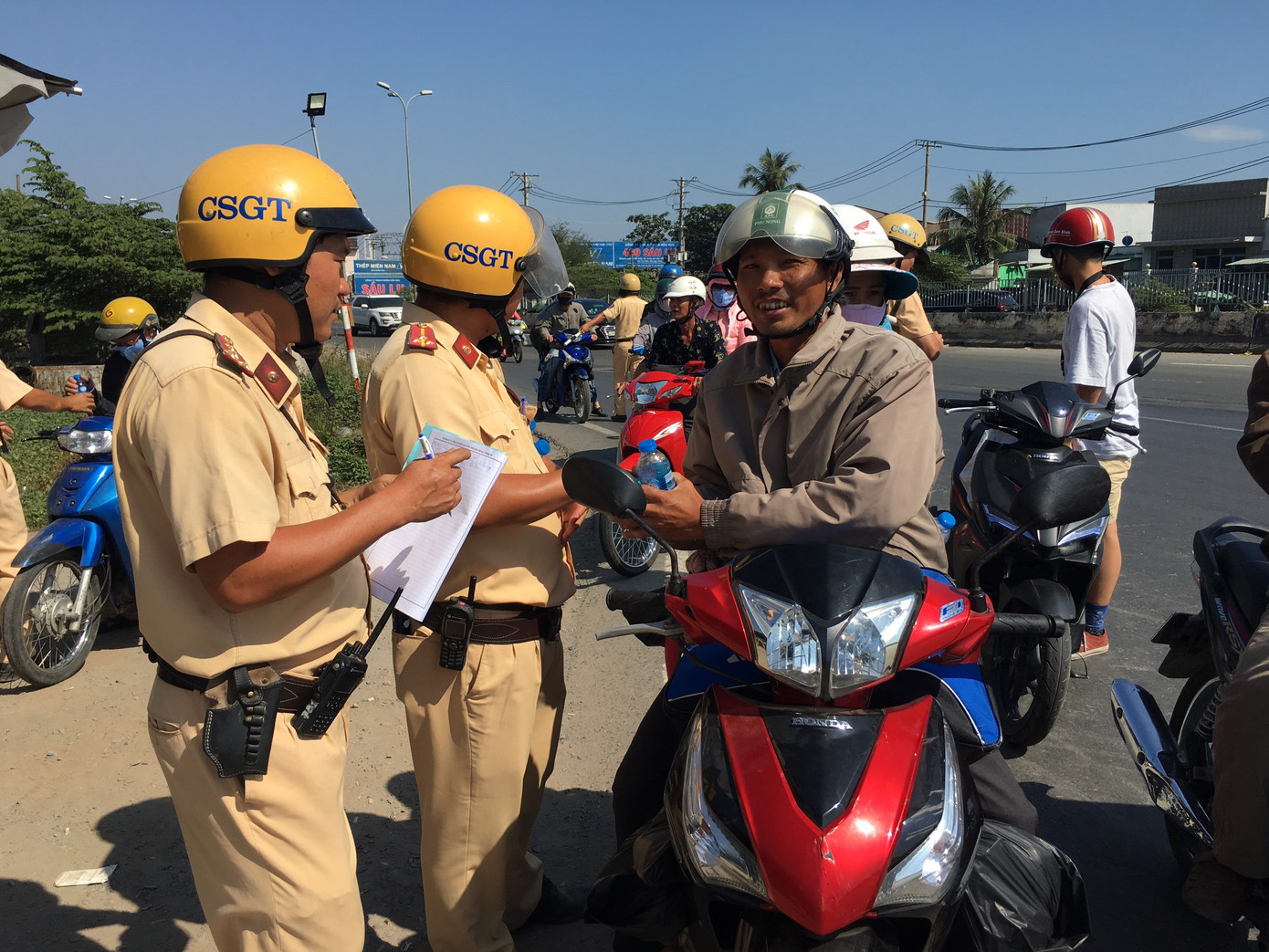 Khi bị CSGT yêu cầu dừng xe, nhiều người dân đang trên đường từ TPHCM về quê ở các tỉnh miền Tây tỏ ra lo lắng.