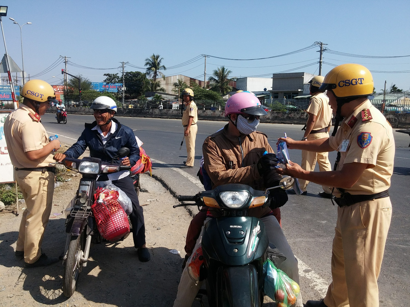 Chiều 20/1 (26 Tết), Chi đoàn Trạm CSGT Tân Túc, Phòng CSGT đường bộ - đường sắt (PC08), Công an TPHCM đã tổ chức hoạt động tuyên truyền, nhắc nhở người dân tham gia giao thông trên tuyến cửa ngõ từ TPHCM đi các tỉnh miền Tây.