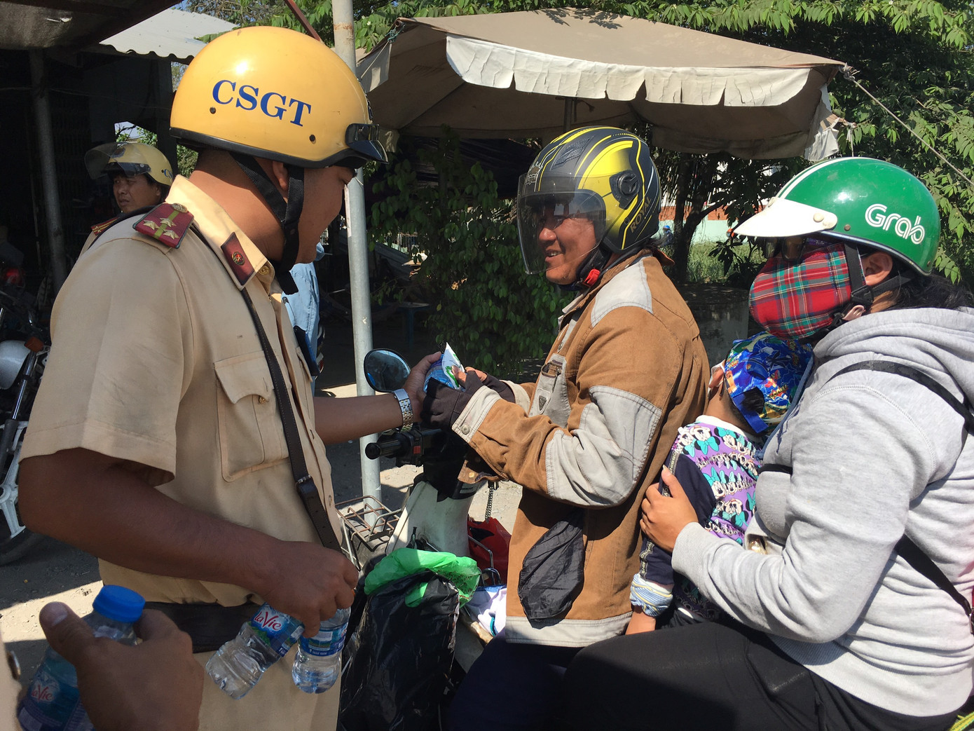 Tuy nhiên, lực lượng CSGT không tiến hành xử phạt mà chỉ tuyên truyền về luật giao thông, nhắc nhở người dân đảm bảo an toàn khi tham gia giao thông.