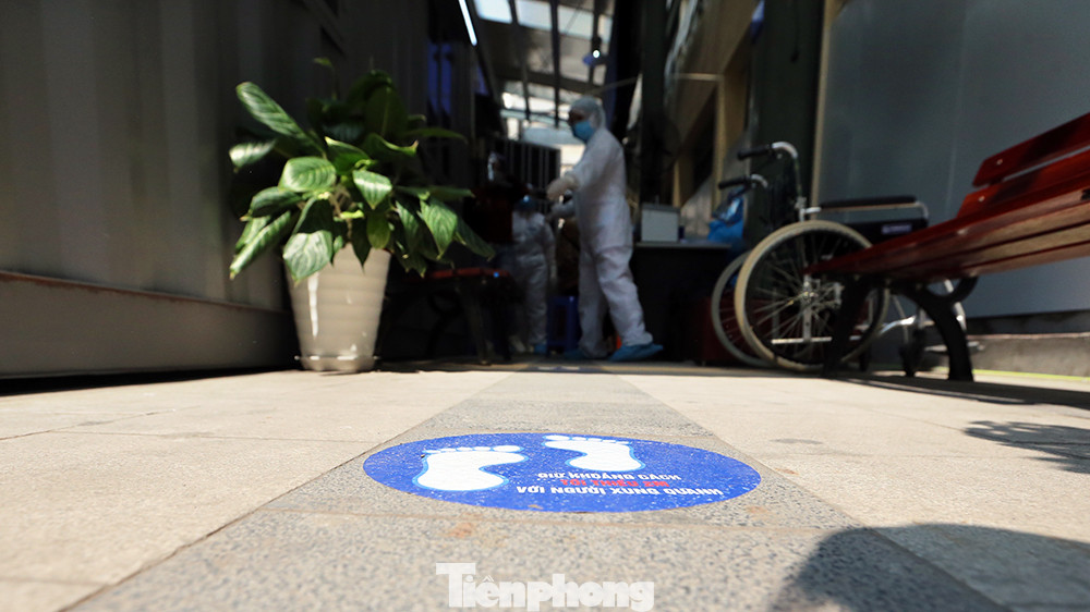 Tất cả mọi người khi đến khám, đi cùng người bệnh đều phải khử khuẩn đồ dùng cá nhân, đo thân nhiệt và khai báo y tế trước khi được phân luồng đến khám tại các khoa, phòng chuyên môn.