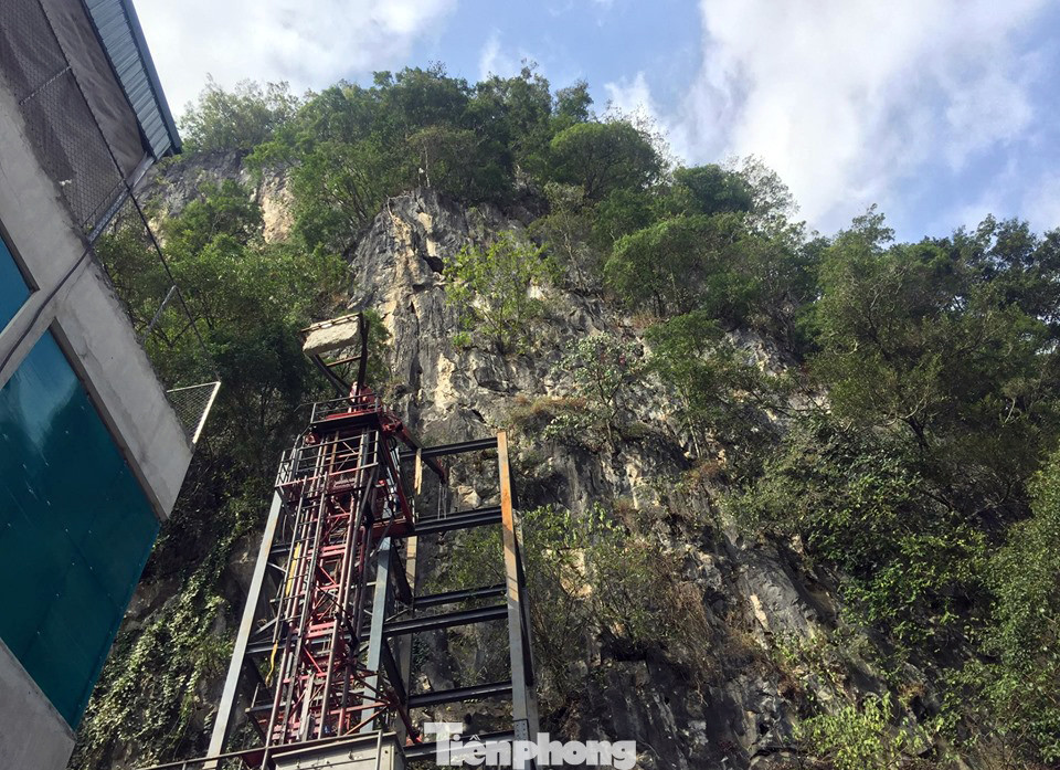 Ngoài ra, dự án còn sử dụng khuôn viên khoảng 5.600m2 thuộc di tích Đồn Cao để xây dựng một tổ hợp nhà hàng, nhà nghỉ, quầy cà phê, lưu niệm… để phục vụ khách du lịch. Mô hình dự án này có nhiều điểm tương đồng với tổ hợp nhà hàng, khách sạn Panorama trên đỉnh đèo Mã Pì Lèng (huyện Mèo Vạc) gây xôn xao dư luận thời gian gần đây. Ngoài điểm chung có vị trí đắc địa, dự án “siêu tháng máy 102m” có quy mô khủng hơn nhiều so với Panorama. Ảnh: cận cảnh tổ hợp nhà hàng, khách sạn đang thi công dở trên đỉnh Đồn Cao.