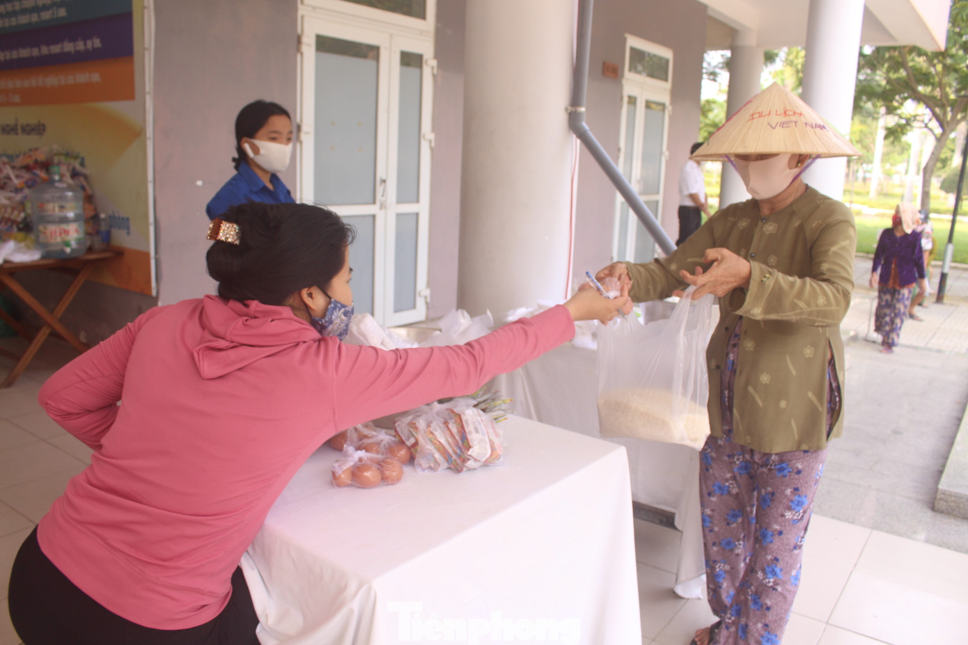 Sáng 17/4, hàng trăm người dân tập trung trong khuôn viên trường CĐ Du lịch Đà Nẵng (quận Ngũ Hành Sơn) để xếp hàng chờ nhận gạo từ cây ATM gạo. Hàng người dài xếp vòng quanh khuôn viên trường, người cách người 2m trật tự chờ đến lượt mình.