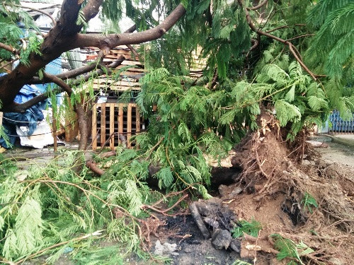 Sau khi leo lên vỉa hè, xe đầu kéo đâm sượt qua cây phượng có đường kính 40 cm phía trước cửa nhà số 1140 Nguyễn Bỉnh Khiêm, tiếp đó xe đổi hướng lái đâm tiếp vào cây phượng cách đó 5 mét, khiến cây phượng này bật gốc. Lái xe bị thương nhẹ.
