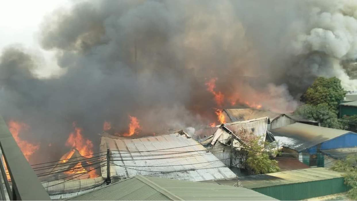 Trước đó, khoảng 10h cùng ngày, một vụ hỏa hoạn xảy ra tại khu xưởng trên đường Ủy Ban thuộc xã Hữu Bằng. Không lâu sau đó, ngọn lửa bùng lên nhanh chóng và lan rộng ra khu vực xung quanh.