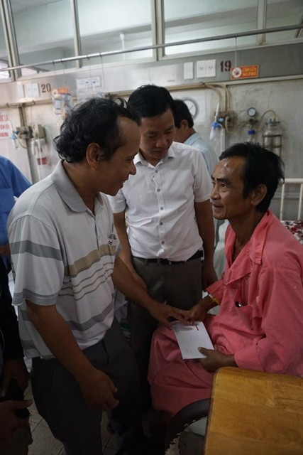 Thay mặt lãnh đạo bệnh viện, bác sĩ Trần Quyết Tiến - Phó giám đốc Bệnh viện Chợ Rẫy - đã đến tặng hoa chúc mừng ông Nén và gia đình khi ông được xuất viện.