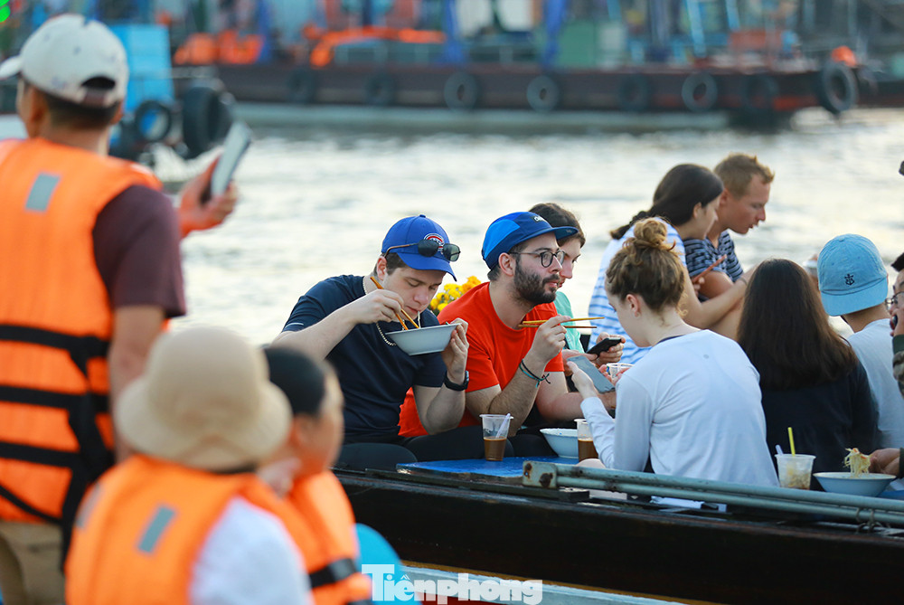 Đến với chợ nổi,du khách nước ngoài rất thích thú và chụp hình lưu niệm