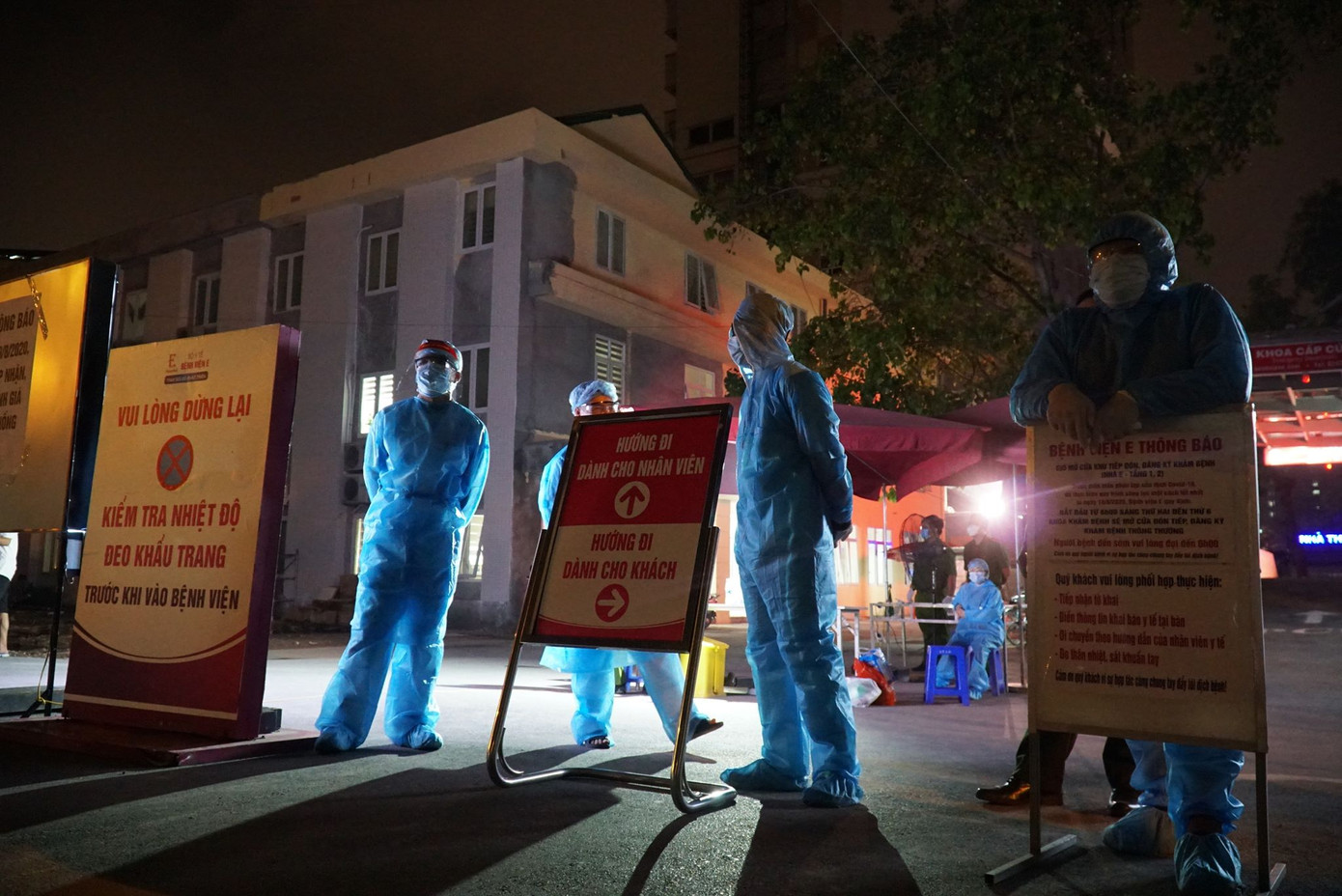 Tới nửa đêm 19/8, lực lượng cảnh sát đã dựng rào, lập chốt phối hợp với lực lượng y tế kiểm soát tất cả người ra vào Bệnh viện E Hà Nội.