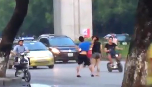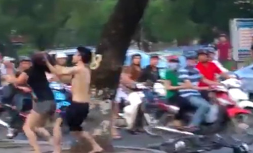 Sau đó đánh, đá ngay trên phố.