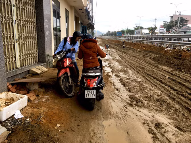 “Đường chưa xong, người dân suốt ngày qua lại, xe tải cũng đi đã lầy lại càng lầy hơn. Mong sao tuyến đường nhanh hoàn thành để kịp đón Tết chứ nếu mà tiếp tục thế này sợ Tết này không dám ra đường quá!”, ông Hoàng, một người dân nơi đây, than thở.