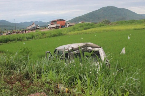Vụ tai nạn khiến bà Minh tử vong tại chỗ, tài xế và 3 hành khách trên ô tô 14 chỗ bị thương nhẹ được người dân đưa đi bệnh viện cấp cứu. Chiếc xe tải và xe ô tô 14 chỗ bị hư hỏng nặng.