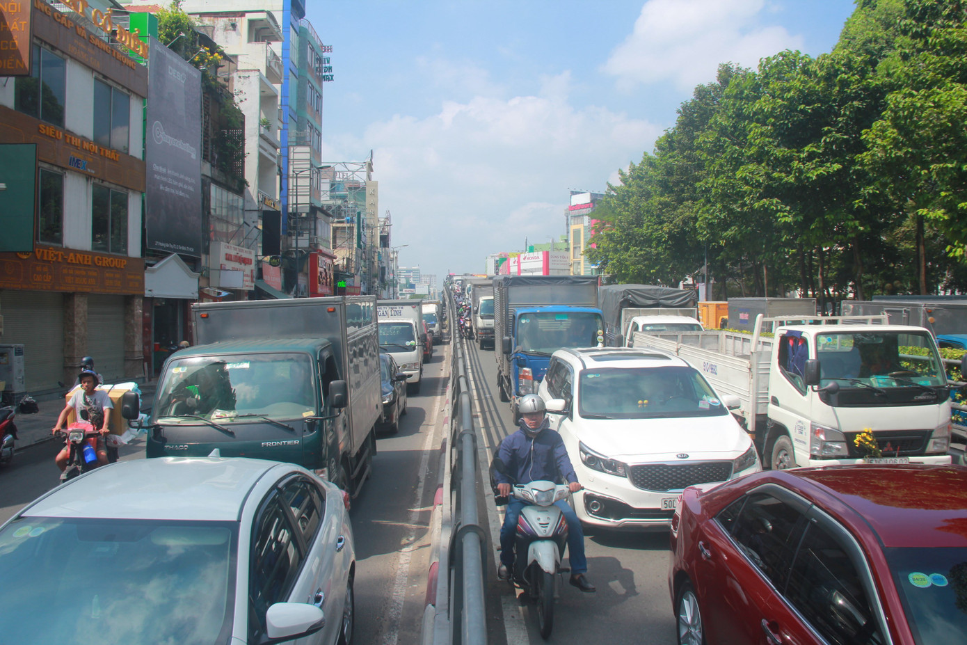 Trưa 14/11, lưu lượng phương tiện lưu thông hướng từ ngoại thành vào trung tâm TPHCM tăng đột biến khiến nhiều tuyến đường xảy ra tình trạng kẹt xe.