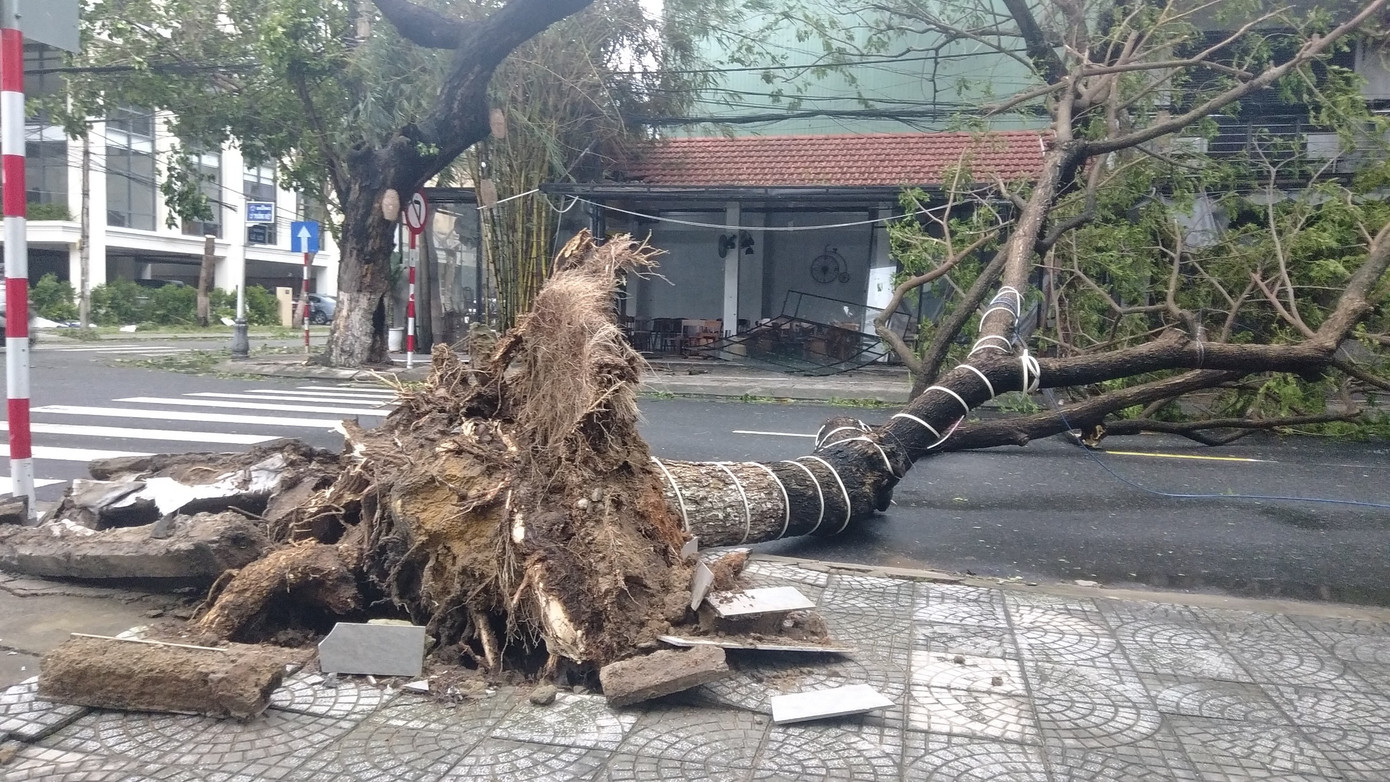 Các cây cổ thụ trên các tuyến đường gần khu vực sông Hàn như Bạch Đằng, Trần Phú, Trần Quý Cáp.... cũng bị gió giật đổ la liệt, khiến giao thông ngưng trệ. Ảnh: Cảnh Huệ