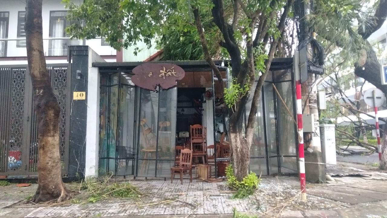 Dãy quán ăn trên đường Trần Quý Cáp (quận Hải Châu) cũng bị bão giật tan hoang. Ảnh: Cảnh Huệ