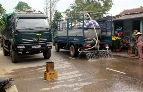 Xe tưới nước được điều đến để hạn chế bụi nhưng người dân không chấp nhận và yêu cầu các tài xế chạy chậm, khi chạy không được bóp còi lớn.