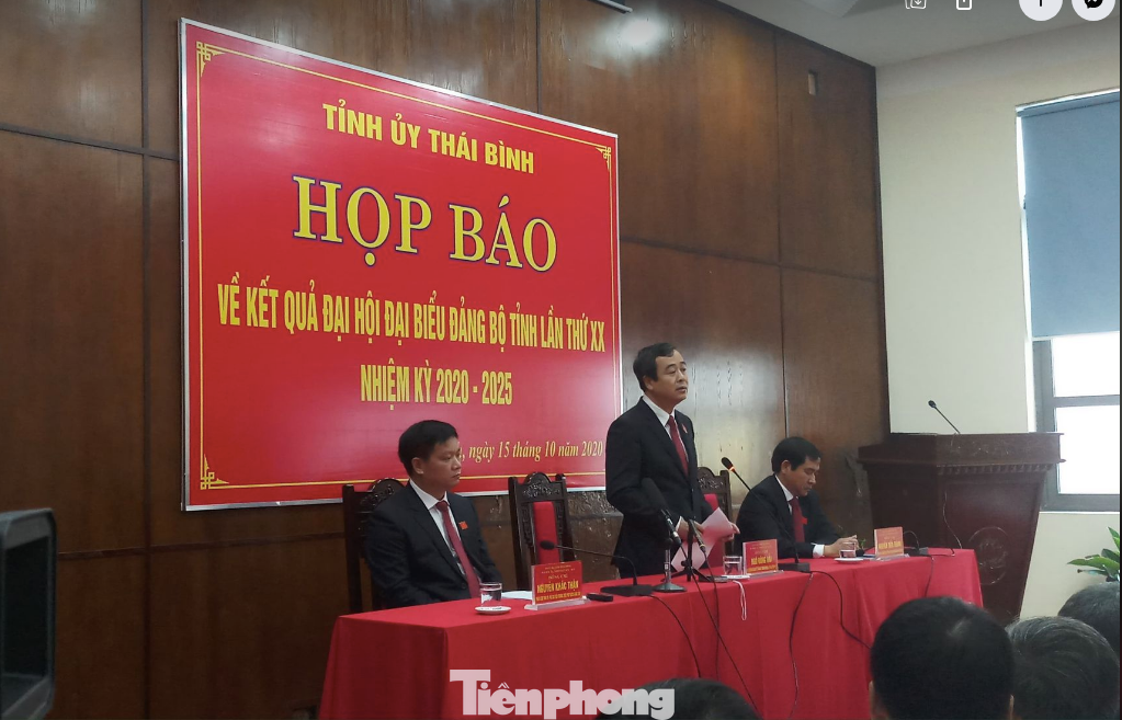 Thường trực Tỉnh ủy Thái Bình khoá XX tham dự họp báo công bố kết quả đại hội Đảng bộ tỉnh Thái Bình - Ảnh: Hoàng Long