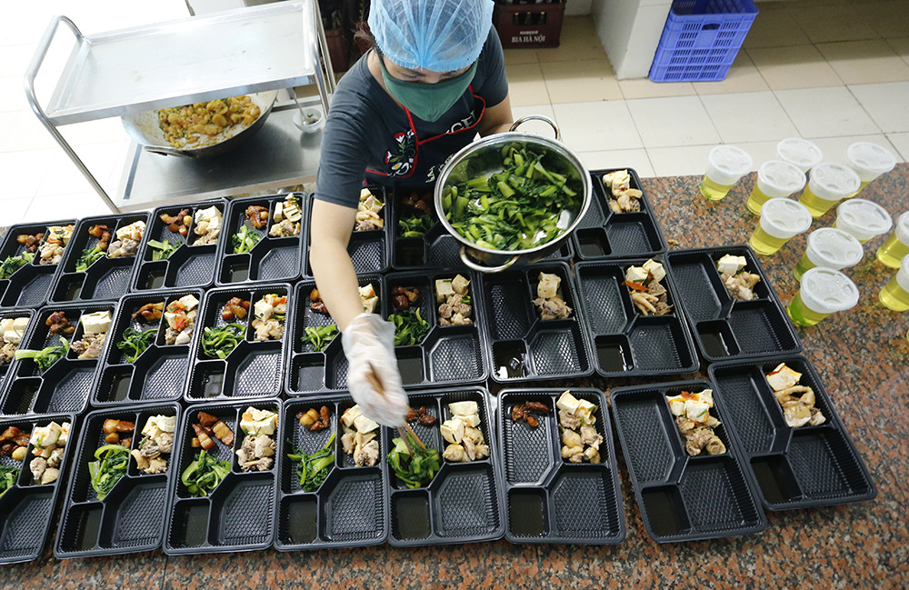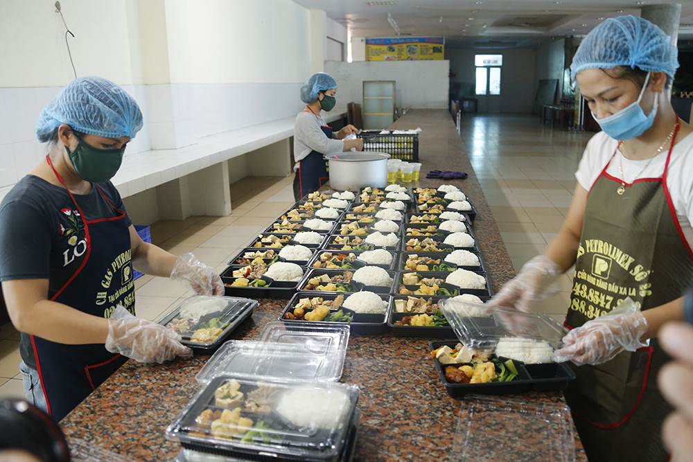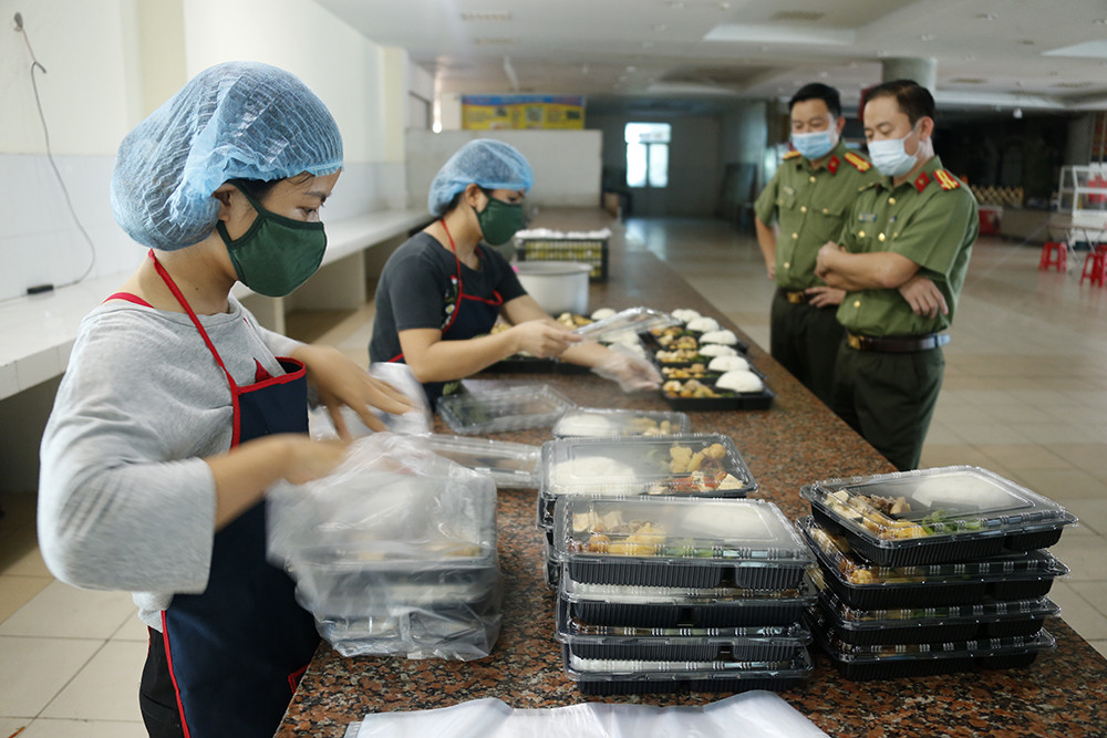 Nhân viên nhà bếp sau đó mang sang bệnh viện Công an Thành phố Hà Nội ngay cạnh đó chuyển vào cho các y bác sĩ phục vụ nơi cách ly.