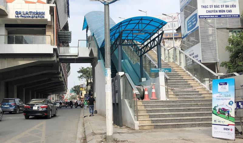 Đặc biệt, tại các cửa vào cầu thang để đi lên ga, hầu hết bị bịt kín, với các cửa ga tại nhà ga Vành đai 3, nhà ga Hoàng Cầu… đơn vị thi công đã căng dây và dựng các biển báo tự chế với các dòng chữ viết tay “Cấm vào ga”, “Không phận sự miễn vào”…