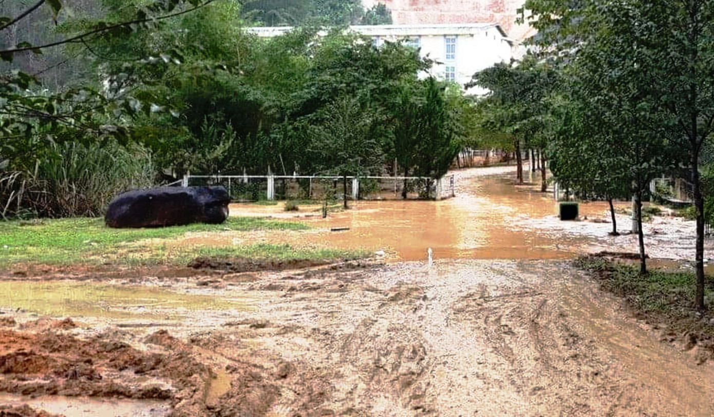 Nước tràn ngập sân nhà máy khoảng 30cm kéo theo bùn đất và đá, nhưng chưa chảy lan vào các sàn của nhà máy. Lưu lượng nước xuất lộ ra tại cơ 177 khoảng 9m3/s.