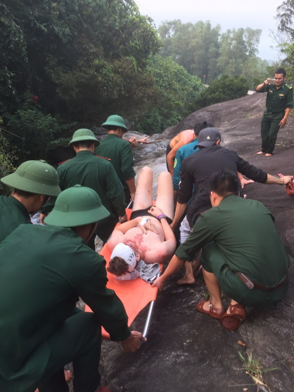 Đến 15h40 tổ tuần tra đã tổ chức lực lượng sơ cấp cứu ban đầu và điện báo gọi xe cấp cứu từ Bệnh viện đa khoa Hoàn Mỹ - Đà Nẵng để đưa nạn nhân về Đà Nẵng tiếp tục chữa trị.