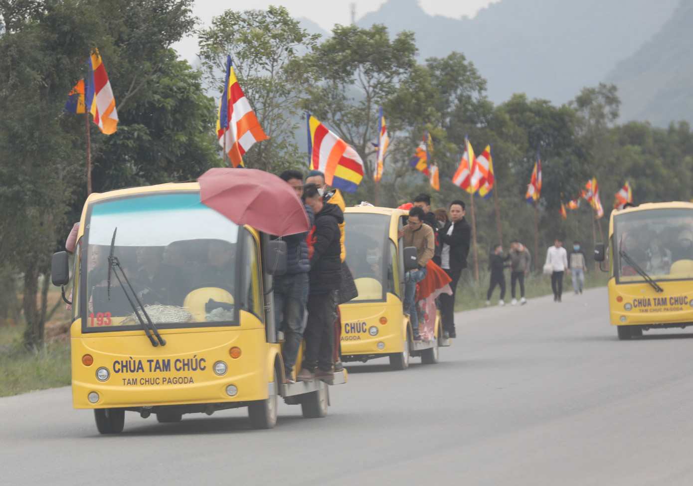 Dù chùa Tam Chúc đã bố trí tăng lên 300 xe điện vào dịp này, tuy nhiên không đáp đứng được nhu cầu đi lại do lượng người đồ về ngôi chùa quá tải. Nhiều người không mua được vé đành phải đi xe ôm hoặc chấp nhận đi bộ với quãng đường vài km mới đến được ngôi chùa này.