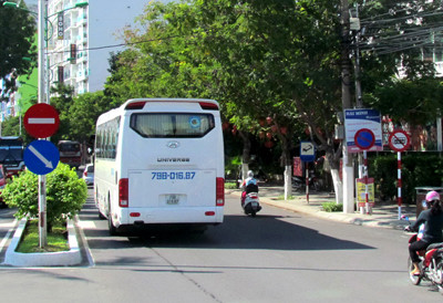Xe của Cty Anex chuyên đưa đón khách du lịch Nga chạy vào nơi trước đây là khu vực cấm