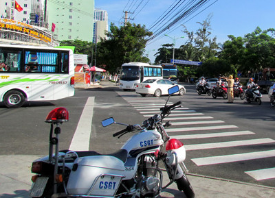 CSGT hướng dẫn xe từ 9 chỗ trở lên rẽ vào hẻm 86 Trần Phú