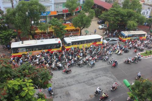 Lượng phương tiện tham gia giao thông tăng đột biến khiến các phương tiện lưu thông rất chậm.
